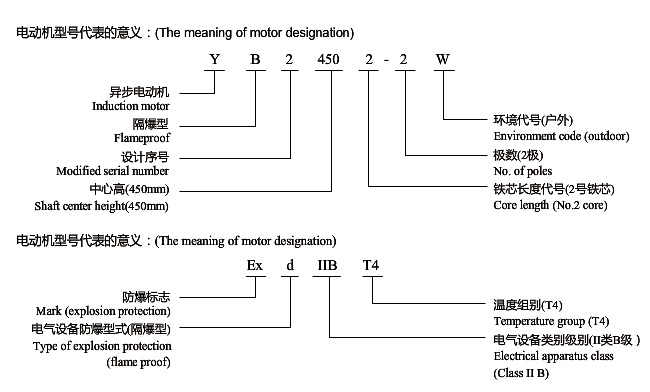 第2部分:隔爆型“d”》的规定,制成隔爆型电动机、防爆标志为ExdI、Exd II AT4 Exd II BT4、Exd II
