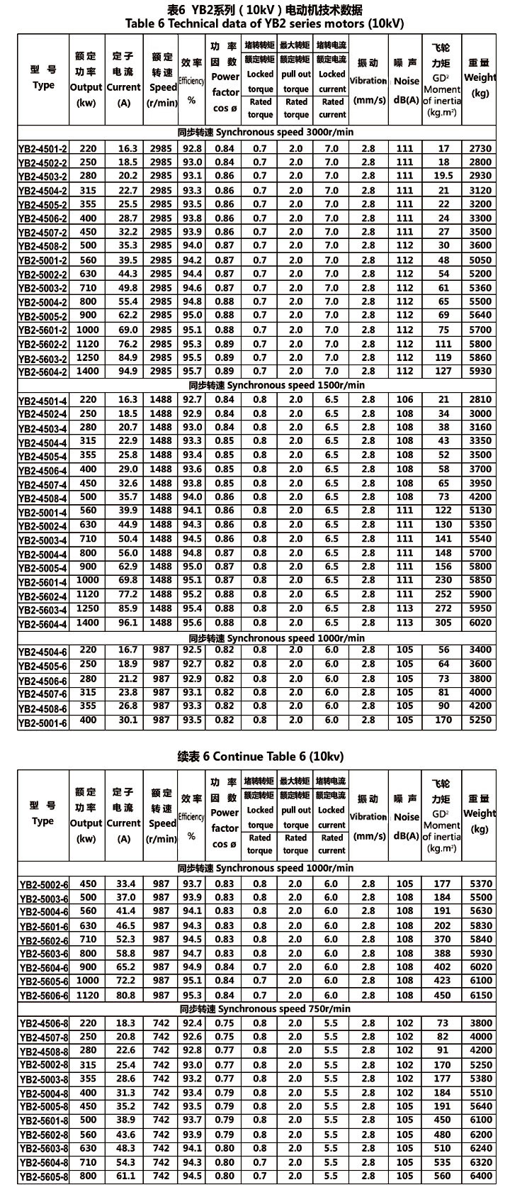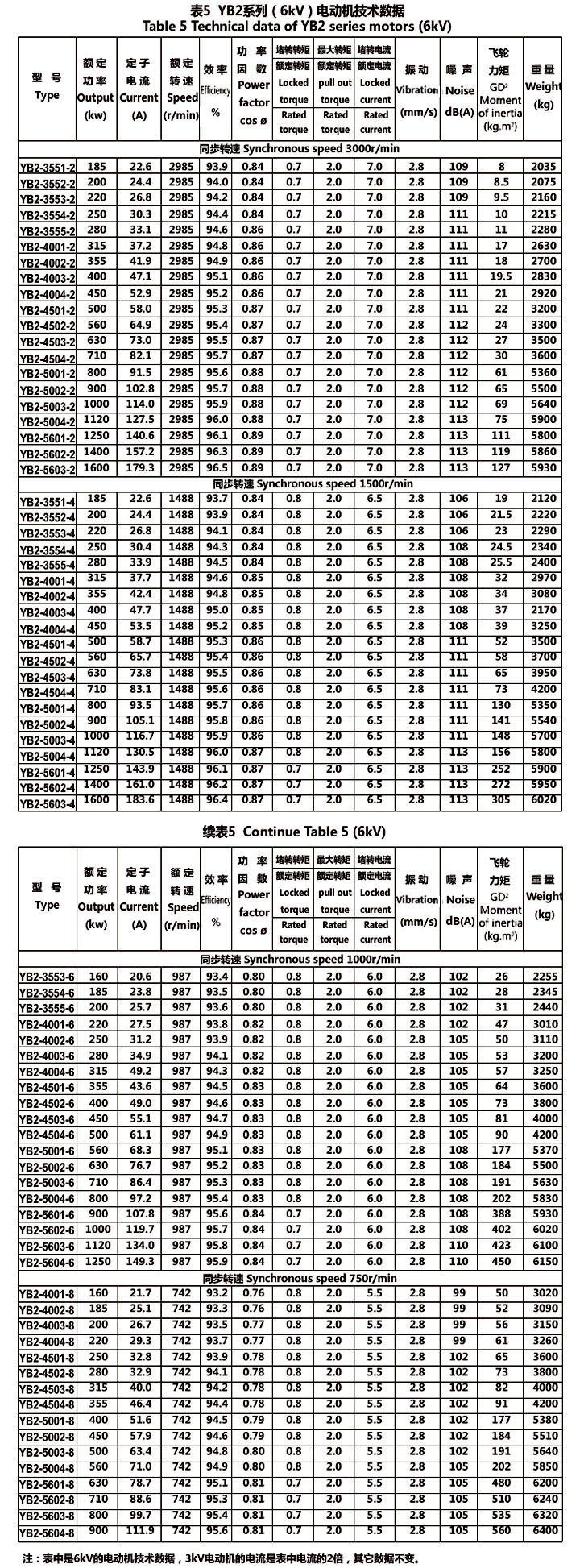 5.1 YB2系列6kV、10kV电动机电气性能应分别符合表5或表6的规定。 5.2 电动机的振动速度有效值不大于2.8mm/s。