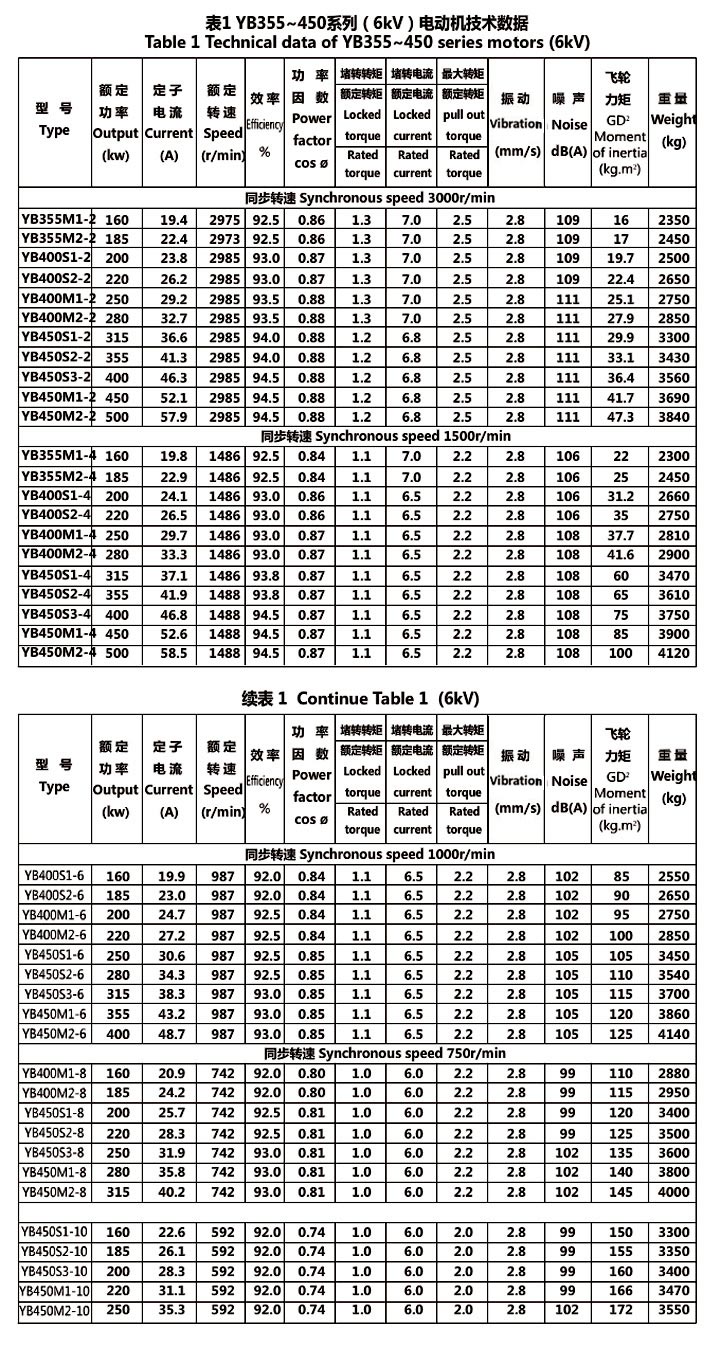 YB355-450系列高压隔爆型三相异步电动机是我公司自行设计的具有国际先进水平的封闭型自扇冷式鼠笼电动机。采用先进的设计理念,吸收了国内外在此类电动机设计中的先进技术。具有体积小、重量轻、功率大、效率高、温升裕度大、性能好、振动和窜动小,噪声低、防爆性能优良,可靠性高等优点,能满足用户多种需求、使用维修方便。