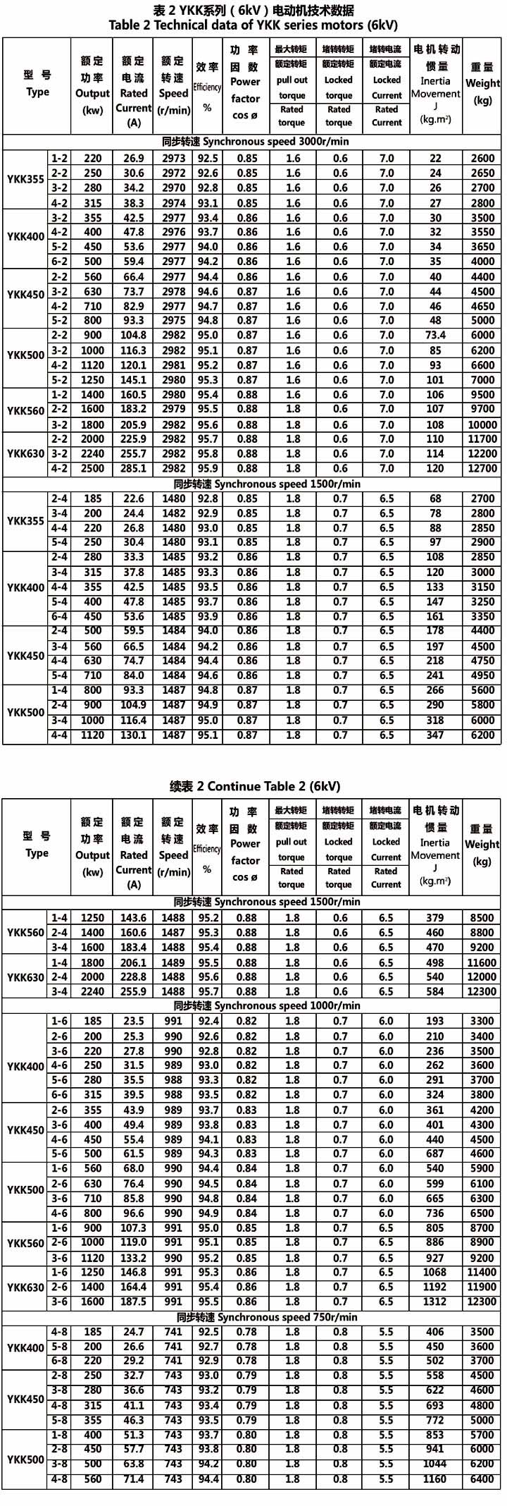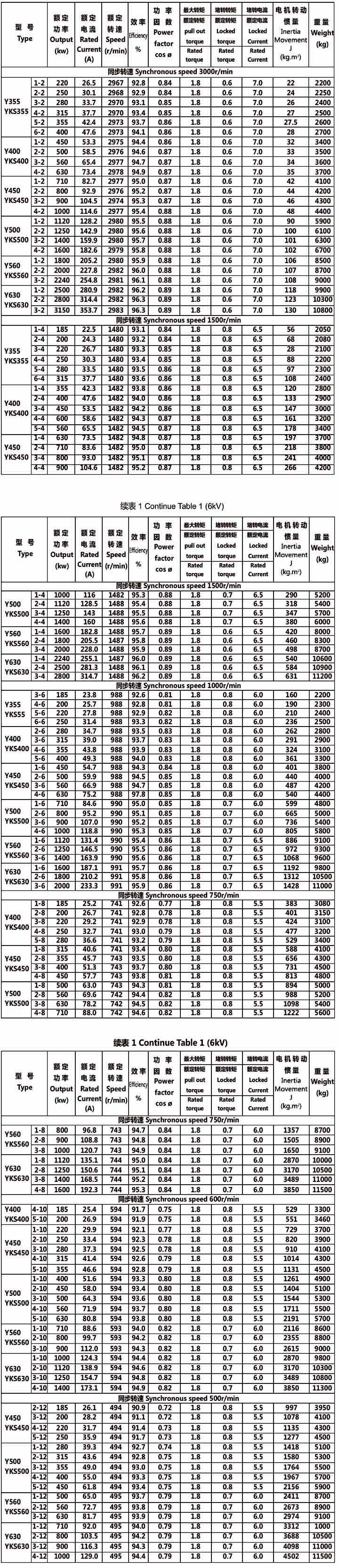 表 1 Y、YKS系列(6kV)电动机技术数据